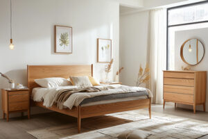 When choosing bedroom furniture, the material plays a key role in defining the look, feel, and durability of your space. Solid wood is a classic choice, known for its strength, timeless appeal, and natural grain patterns. It’s often found in traditional or high-end furniture, adding warmth and character to the room.