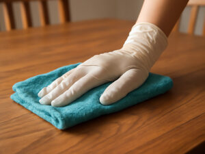 - Daily wipe down: Use a barely damp microfiber cloth for wood; glass cleaner for glass; pH-neutral soap for stone or marble. Immediately dry with a soft towel.